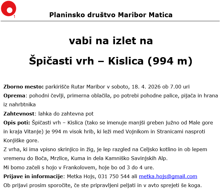 Pisarna bo v sredo, 8. 4. 2026, zaprta.